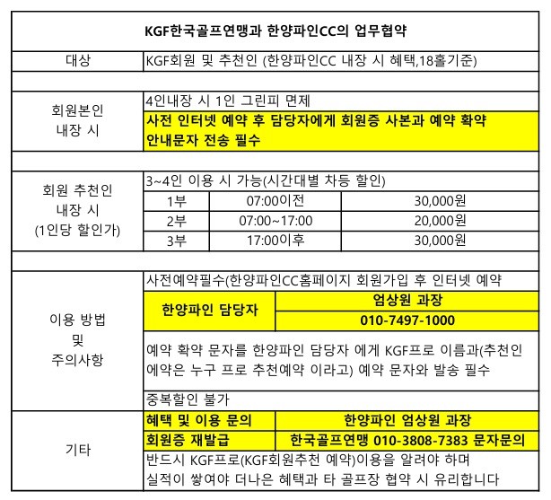 (주)한국골프연맹투어 | 121-737 서울특별시 마포구 마포대로 15 현대빌딩 1503호 | 대표전화 : 02-715-5000 | 팩스 : 02-715-5011 | 이메일 : kgf5000@naver.com 대표자 : 최일곤 | 사업자번호 : 105-87-91170 | 통신판매업신고번호 : 2013-서울-0001 | 개인정보보호 책임자 : 윤지은 COPYRIGHT KGF. ALL RIGHTS RESERVED