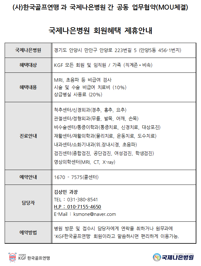 (주)한국골프연맹투어 | 121-737 서울특별시 마포구 마포대로 15 현대빌딩 1503호 | 대표전화 : 02-715-5000 | 팩스 : 02-715-5011 | 이메일 : kgf5000@naver.com 대표자 : 최일곤 | 사업자번호 : 105-87-91170 | 통신판매업신고번호 : 2013-서울-0001 | 개인정보보호 책임자 : 윤지은 COPYRIGHT KGF. ALL RIGHTS RESERVED